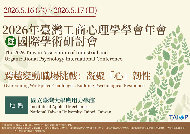 2026年臺灣工商心理學學會年會暨國際學術研討會-跨越變動職場挑戰:凝聚「心」韌性